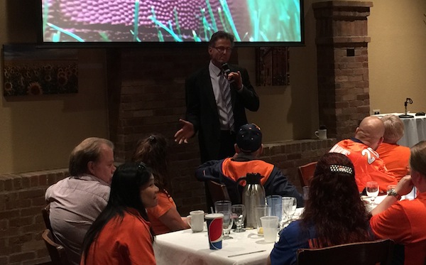 Former Denver Broncos wide receiver Steve Watson spoke to a packed house at the August meeting of the Denver Broncos Quarterback Club. Watson entertained the crowd with stories from his illustrious playing career and had words of inspiration for us, too.